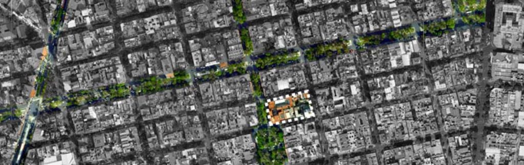 El edificio se localiza en la Colonia Roma, un barrio de valor histórico en el sector central de la Ciudad de México. La Roma se desarrolla en el siglo XIX como uno de los primeras extensiones de la ciudad central, configurada en una malla ortogonal ocupada por grandes casonas que en su momento albergaron a las clases más altas de la capital. Con el surgimiento de la vida suburbana en los años 50, la Roma fue perdiendo habitantes a lo largo de la segunda mitad del siglo XX hasta llegar a su peor momento durante los años que siguieron al gran sismo del año 1985. Debido a que la Roma se localiza en lo que antiguamente era el lago de Texcoco su subsuelo es altamente lodoso y por lo tanto las ondas sísmicas se amplifican, lo que generó que durante el fuerte temblor del 85 la Roma fuese una de las zonas más afectadas de la ciudad; se cayeron muchos edificios y muchos de los que resistieron fueron abandonados por tener daños estructurales o, en muchos otros casos, por el medio de sus habitantes a que las edificaciones no resistieran otro sismo. El barrio se deterioró profundamente, con altos grados de inseguridad y de inmuebles abandonados, hasta que recientemente ha resurgido con fuerza como una de las zonas más activas de la ciudad, llenándose de galerías de arte, pequeños restaurantes, cafés y jóvenes ocupando de nuevo sus calles y espacios públicos.