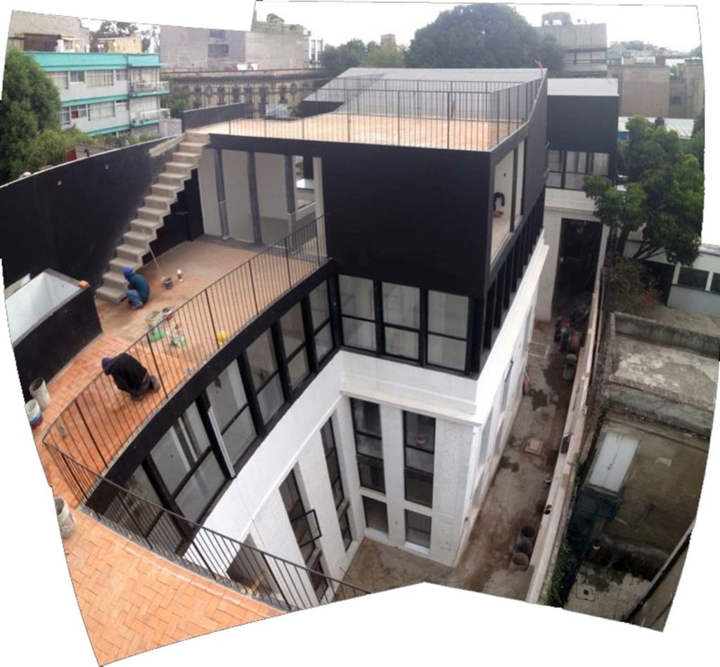 El proyecto mantiene la casi totalidad de la edificación existente, más allá de los dictámenes establecidos por los las instancias de preservación locales, que establecen para la casa existente la conservación únicamente de la fachada; creemos en el valor de la estructura que da razón de ser a dicha fachada, así como en su interés espacial y a las posibilidades de mantenerlo a pesar del aumento de superficie útil del edificio. La construcción existente ocupa la gran mayoría de la parcela, pero tiene en su parte posterior una ruina de una antigua zona de servicio, independiente de la casa. El proyecto se sustenta en el análisis pormenorizado de cada uno de los elementos para buscar generar una realidad totalmente distinta a la existente, acorde con la nueva realidad económica y social de la zona, pero en armonía con la construcción original: pasado y presente conviviendo, respetándose y creando un nuevo elemento unitario construido de dos tipologías arquitectónicas acordes con sus momentos históricos. El proyecto se estructura a través de un corredor lateral; el patio de acceso existente en la casa original se replica en la parte posterior y proporciona los 2 núcleos de accesos al edifico.